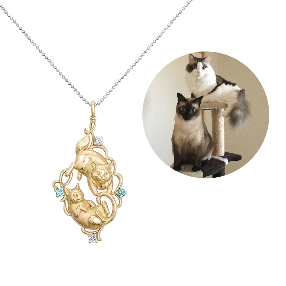 かけがえのない愛猫をいつも胸にやんちゃで元気いっぱいな性格の“PIPPIちゃん”と、ふわふわな毛並みが特徴の“LUNYちゃん”。それぞれのチャームポイントを活かしたデザインに仕上げました。