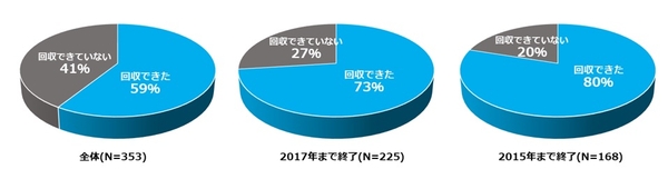 -「回収できた」と回答した割合は全修了生では59%だったが、2015年までの修了生においては80%という高い数字を示した。
