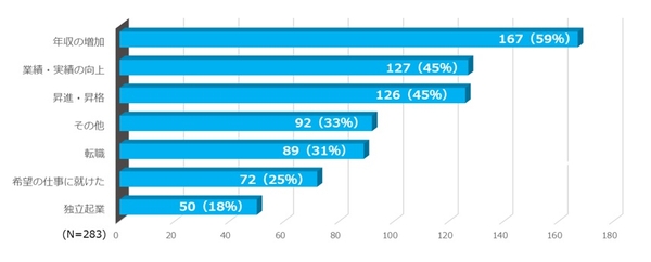 Q: キャリア面で良い変化があった方は、具体的にどのような変化がありましたか(複数回答可、任意回答、N=283)