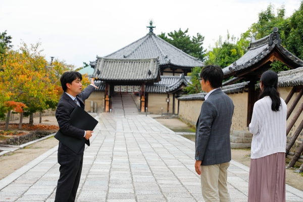 法隆寺の見どころや歴史を熟知した「語り部」が、ガイドブックや教科書とは異なる切り口で、法隆寺の魅力をお伝えします。当館宿泊者限定で参加が可能です。