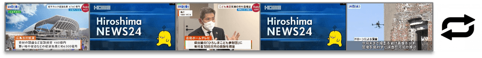 広島県内外で起きた事件や事故、災害、情報など日々のニュースやコンテンツ動画を24時間配信を行い、最新情報3日間の動画を自動的に公開し、4日前の動画ファイルは自動的にプレイリストから削除される独自システムを開発。直近3日間のニュースをループ(繰り返し)し流します。