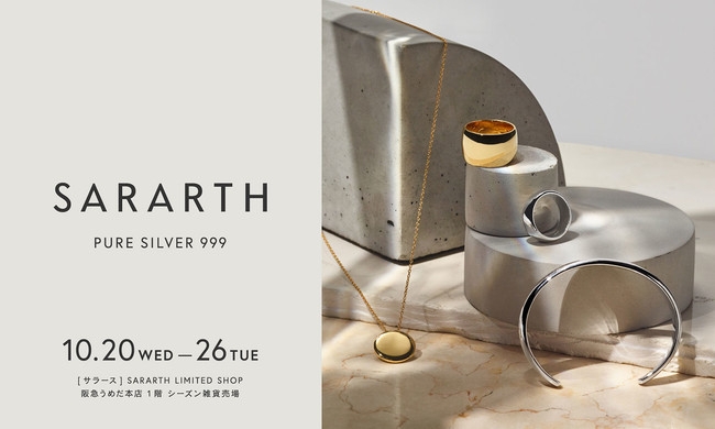 ジュエリーブランド "SARARTH(サラース)" は、ポップアップストア「SARARTH LIMITED SHOP」を、阪急うめだ本店1階 シーズン雑貨売り場にて10月20日(水)–10月26日(火)の7日間の期間限定で出店いたします。今回、高硬度PURE SILVER 999/24金(K24)プレーティングの2色で展開する各アイテムに加え、"ELLIPSE" コレクションの新作 "SWAY" を初公開、数量限定で先行発売いたします。