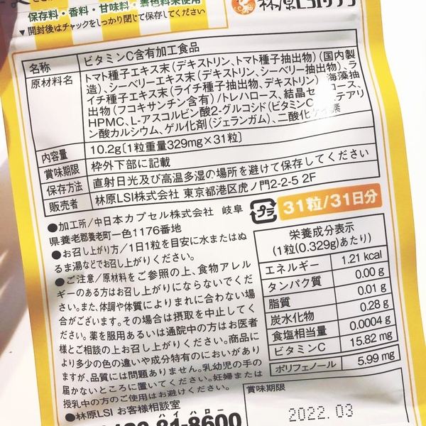 化粧品でよく使われている「安定型ビタミンC誘導体」をサプリで摂取できる!林原LSIの「ビタミンC-α」