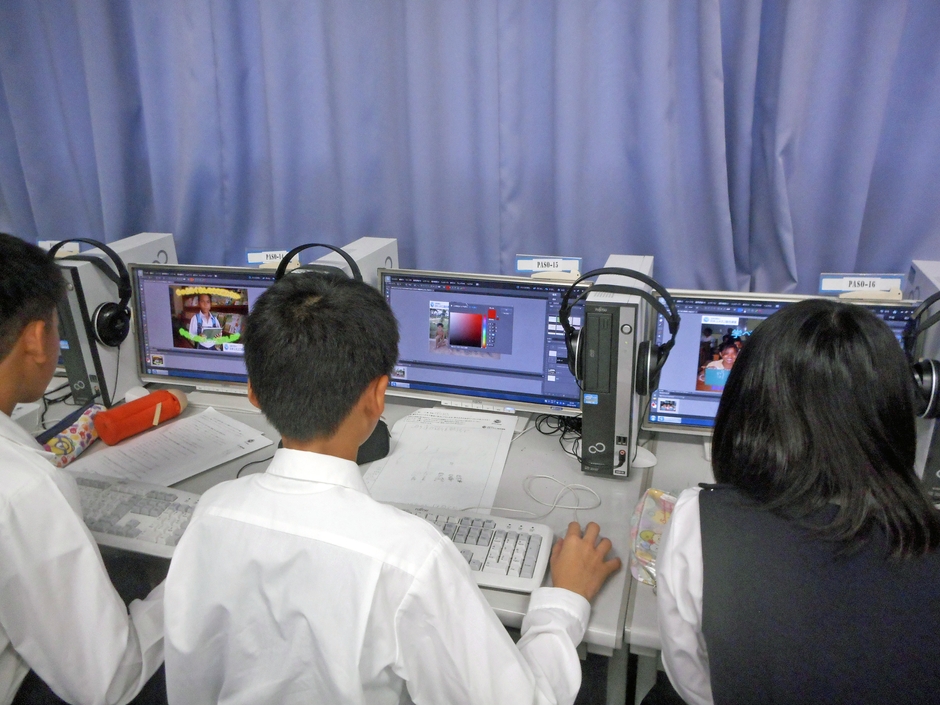 日本ユネスコ協会連盟は、小・中・高等学校を対象に、国際理解教育と情報教育を組み合わせた「寺子屋リーフレット制作プロジェクト」を実施しています。全国の参加校で児童生徒が途上国の教育支援である「ユネスコ世界寺子屋運動」について学習。海外の教育支援への協力を呼びかけるオリジナルのリーフレットをパソコンを用いて作りました。リーフレットは、未使用ハガキなどを活動資金として募る「書きそんじハガキ回収活動」に活用するもので、ESD(持続可能な開発のための教育)の取り組みの一環となっています。