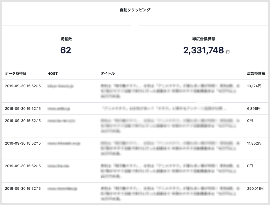✓ 広告価値換算機能付きのウェブクリッピング(キーワードクリッピング)