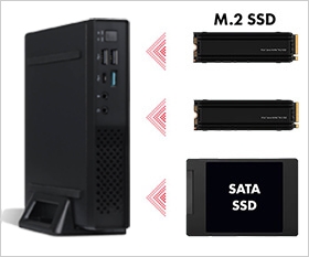 内部にM.2スロットが2ポート、SATAポート(2.5インチ)が1ポート搭載されており、最大3台までのストレージを内蔵することが可能です。ストレージを複数内蔵することにより、動画や静止画などの大容量データの保存、データのバックアップが行いやすくなります。
