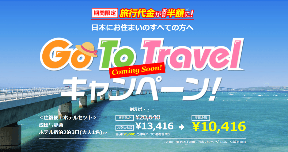One Asiaのビジョンをかかげ、アジアを舞台に、エアトリ旅行事業、訪日旅行事業、ITオフショア開発事業、ライフイノベーション事業と投資事業を手掛ける株式会社エアトリ(本社:東京都港区、代表取締役社長 兼 CFO:柴田 裕亮、証券コード:6191、以下当社) らが運営する総合旅行プラットフォーム「エアトリ」(https://www.airtrip.jp/)は、7月22日(水)の開始(※1)に先駆け、「Go To Travelキャンペーン」特設サイトを公開しました。