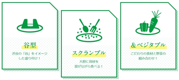 ※1 #シブサラ:渋谷をサラダで満ちあふれた街にすることを目指して、2016年にキユーピーが考案したサラダ。①渋谷の「谷」をイメージした盛り付け、②大胆に具材をスクランブル!(しながら食べる)、③そのお店こだわりの食材と野菜の組み合わせ、の3つの定義から成る。