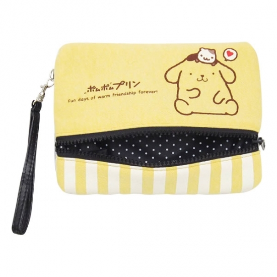 ふわふわのポムポムプリンのパスケース。ごろんと寝転がる姿は抱きしめたくなるかわいさ♡
