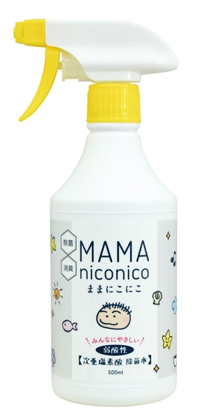 幅広いウィルス、細菌、カビに効果有 除菌・消臭剤 弱酸性次亜塩素酸水 ままにこにこ 100PPM前後 500ml大容量スプレー 特許習得済み