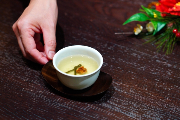 ●福梅・福昆布を添えて、オリジナルブレンドの大福茶をお召し上がりいただきます。