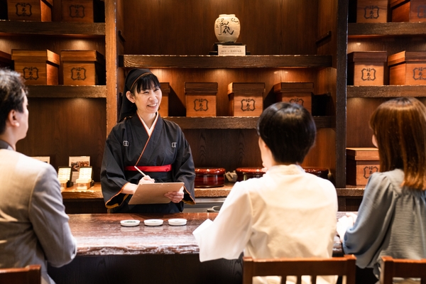 福寿園京都本店 地下1階「京の茶蔵」では、日本茶インストラクターがお茶に関するマメ知識やお茶の淹れ方、大福茶の故事などをレクチャーします。