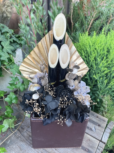 「花の門松」は、環境に配慮したプリザーブドフラワーやドライフラワーを使用しているため、手入れ不要で長期間その美しさを楽しめるのが特徴です。長持ちする素材を使うことで、毎年新たに門松を買い替える必要がなく、廃棄物も減らすことができ、限られた資源を無駄にしない選択を提供しています。自然の美しさを取り入れながら、日本の伝統を守り、未来に伝えるという姿勢を込めた製品です。