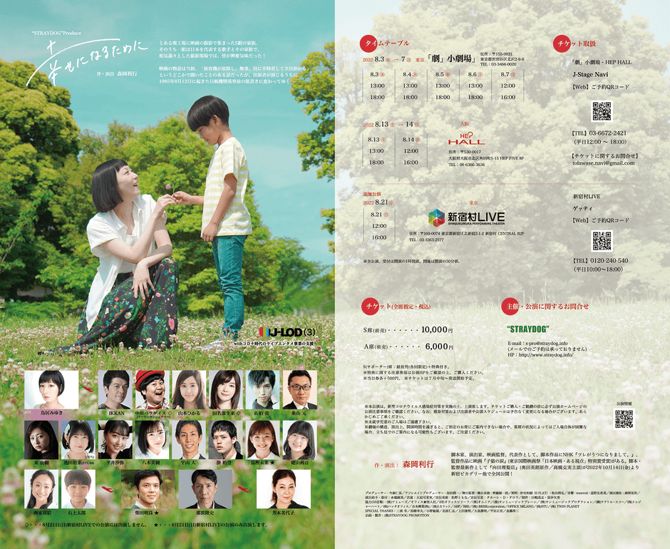 ストレイドッグ(主宰:森岡利行)主催、『幸せになるために』が東京・大阪での公演の後、2022年8月21日 (日)に新宿村LIVE(東京都新宿区北新宿2-1-2新宿村CENTRAL 地下2階)にて追加公演が決定しました。