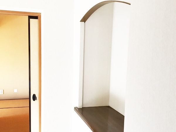 厚めのクロスなら最小限のパテで下地の凸凹を隠すことが出来、キレイに仕上げる事が出来ます。