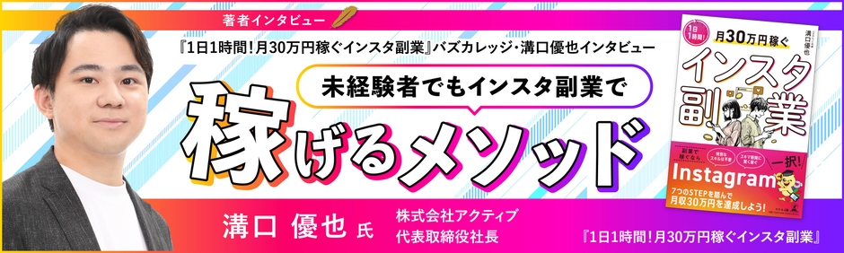 【著者インタビュー】『1日1時間!月30万円稼ぐインスタ副業』バズカレッジ・溝口優也インタビュー|未経験者でもインスタ副業で稼げるメゾット