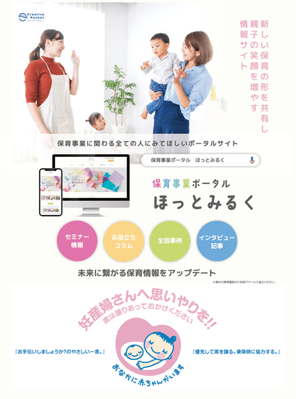 マタニティマークとタイアップ。保育事業者向け情報メディア「保育事業ポータルほっとみるく」をリリース。