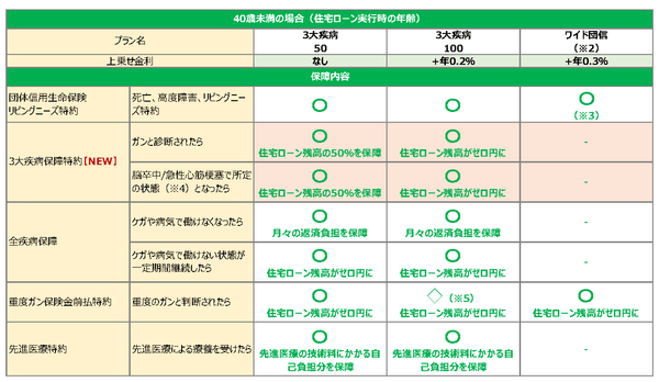 SBI 生命保険株式会社(本社:東京都港区、代表取締役社長:小野 尚、以下「SBI 生命」)は、住信 SBI ネット銀行株式会社(本社:東京都港区、代表取締役社長:円山 法昭、以下「住信 SBIネット銀行」)向けの団体信用生命保険を改定し、この度、同行で新プラン「スゴ団信」として取扱いが開始されることとなりましたので、お知らせいたします(2021 年 10 月 1 日以降に事前審査をお申込みいただいたお客さまが対象となります)。住宅ローンお借入時のご年齢が 40 歳未満のお客さまに、通常の団体信用生命保険に加え、ガン診断時給付を含む 3 大疾病保障(50%)および全疾病保障を基本付帯するのはネット銀行初となります※1。