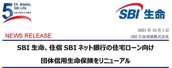 SBI 生命、住信SBI ネット銀行の住宅ローン向け 団体信用生命保険をリニューアル