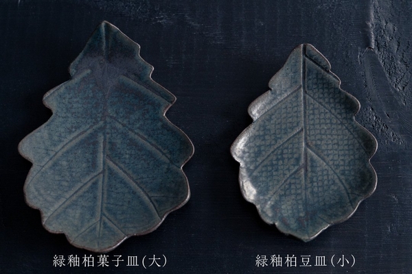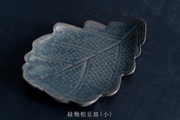 こだわりの緑釉で表現する落ち着いた柏皿。ハレの日も日常も使える嬉しい作品です。