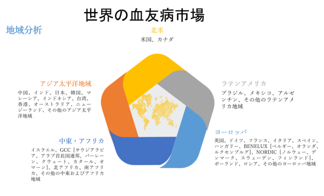 世界の血友病市場は、北米、ラテンアメリカ、ヨーロッパ、アジア太平洋、中東・アフリカなどに地域によって分割されています。