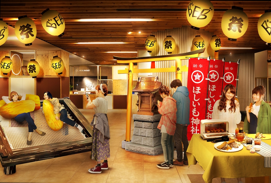 「居酒屋以上 旅未満」の体験を提供する「星野リゾート BEB5(ベブファイブ)土浦」は、2021年9月1日から11月21日まで、茨城県の名産品「干し芋」を楽しむイベント「BEBほしいもフェス」を開催します。イベント期間中、パブリックスペース「TAMARIBA(タマリバ)」には「欲しいものが手に入る」というご利益がある「ほしいも神社」の分社や、干し芋になりきることができるフォトスポットが登場。また「TAMARIBA」で干し芋セットを購入して、さまざまなトッピングと組み合わせて食べることができます。茨城県の名産品である干し芋をユニークに楽しむイベントです。