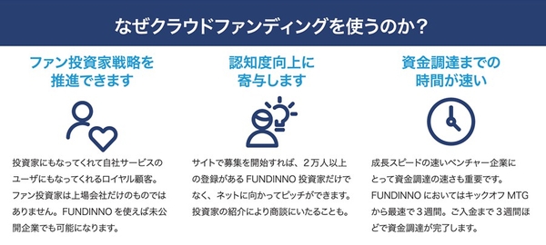 日本初の株式投資型クラウドファンディングサービス『FUNDINNO(ファンディーノ)』https://fundinno.com/ は企業が個人投資家から、“ネットで”資金調達ができるプラットフォームです。