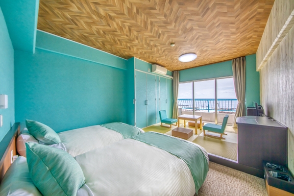 時間によって様々な表情を出す海と空の移り変わりと波の音で癒しのひとときを。