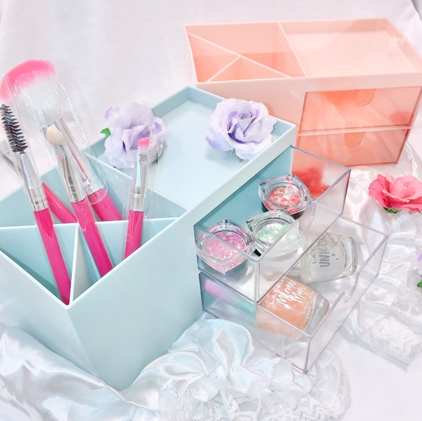 2段の引き出しにブラシ立てが一緒になったコスメボックス☆