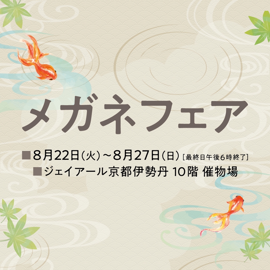 トレンド感のあるスタイリッシュなメガネフレームを お買得価格で一堂に集めた「メガネフェア」 ジェイアール京都伊勢丹にて開催!!