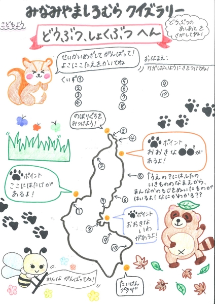 下記デザイン:松岡朋歩さん(経営学科)作成の大人と子ども向けのクイズラリー