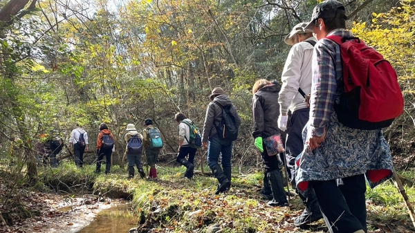 ウォーキングコースには、歩きにくい湿地もありますが、そこはイノシシのヌタ場(泥浴び場)になっていたり、アケビが群生している場所があったり、夏場は蛙やそれを狙うマムシ等の蛇がいたりと、自然豊かな場所と言えます。自然を楽しみながら、ゆっくり歩くのに適したコースであり、今年度の効果検証においてもシニアの血圧の低下が見られました。しかし、人が歩かないと、あっという間に自然に戻ってしまうので、多くの方に利用して頂きたいと思いますし、地域活性化や自然環境の教育現場としても、どんどん活用してもらいたいと考えています。