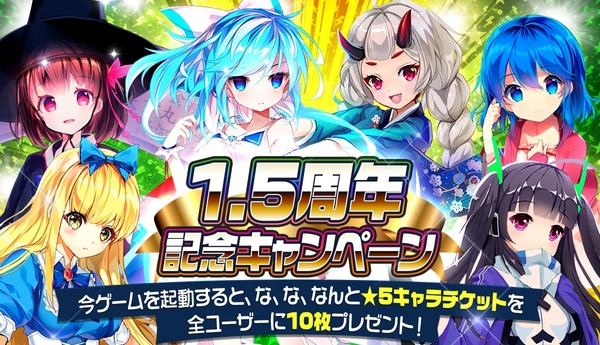 【メリーガーランド 美少女放置RPG】祝!1.5周年!全員★5キャラクター10体もらえるキャンペーン開催中!
