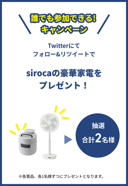 「sirocaの豪華家電プレゼント(抽選で合計2名様)」