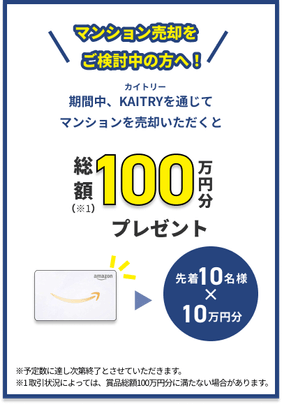 総額100万円分ギフトカードプレゼントなど!マンション売るなら『KAITRY』2周年キャンペーン