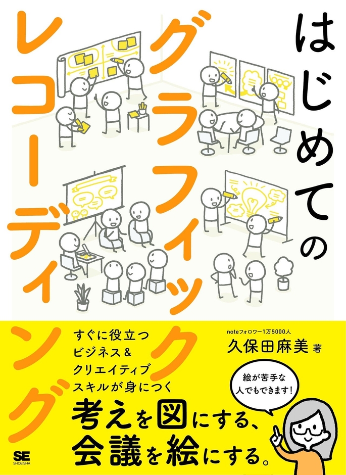 メディアプラットフォームnoteでUI/UXデザイナー・久保田麻美(くぼみ)さんが連載した「グラレコのヒミツ」が、翔泳社から8月26日(水)に『はじめてのグラフィックレコーディング 考えを図にする、会議を絵にする。』として発売されます。本連載は、久保田さんがグラフィックレコーディングを実践する中で気づいたことやコツをまとめたもの。本書は連載をもとに、どんな人でもはじめられるよう分かりやすく構成されました。