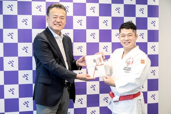 この度の寄付金贈呈式では、2024年度第4期SONアスリートアンバサダーに就任したSONアスリートで、当社社員でもある三上隼人(SON・東京)も参加しました。三上は当社では総合企画本部マーケティング部に所属し、デジタル領域での情報発信業務のほか、市場調査や問い合わせ対応等を担当しています。当日は平岡理事長に日頃の業務内容をご紹介しつつ、今年度のSONアンバサダーとしての抱負もお伝えいたしました。なお、今回贈呈した寄付金は、2025年に開催されるSON世界大会への日本選手団派遣をはじめとした事業に活用される予定です。