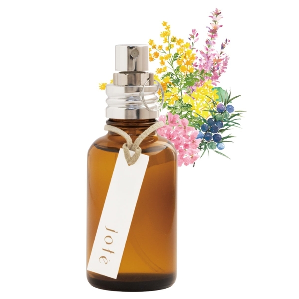 紫外線をほぼカットしてくれる茶色の瓶は、繊細なアロマやハーブの素材を守ります。jote Perfume のガラス瓶は、水平リサイクル*ができるように、スプレーとガラス瓶が分別できる仕様にしています。*使用済みの製品が資源となり、また同じ製品に生まれかわるリサイクルのこと