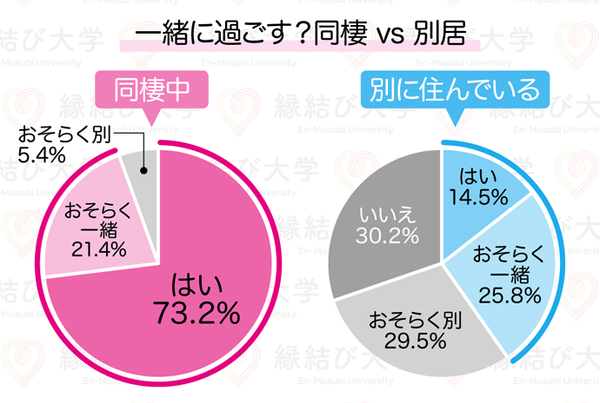 次に、緊急事態宣言後のアンケートに回答したカップルの居住状況について見ていきましょう。