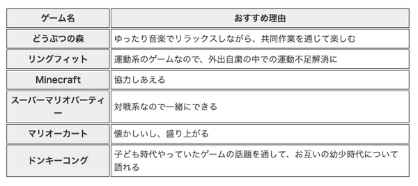 アンケートの回答で多かったお勧めゲームは以下のようなものです。