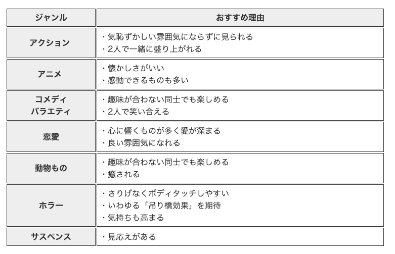 相手の好きな映画やドラマなどを一緒に観ることで、相手の価値観をより深く知ることが出来ます。相手との関係を深めるという意味でも、映画やドラマ鑑賞はお勧めです。