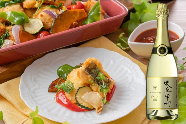 スパークリングワインから白、赤など10種類の山梨ワインをお楽しみいただける「山梨ワイン飲み放題(1,980円)」でご用意する銘柄とのペアリングにお薦めのメニューの一部をご紹介いたします。