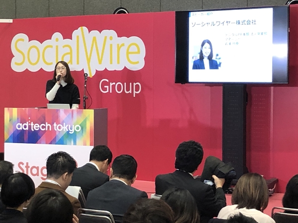 ソーシャルワイヤー株式会社(本社:東京都新宿区、代表取締役社長:矢田 峰之、証券コード:3929)は、2019年11月27日(水)・28日(木)に東京国際フォーラムで行われるアジア最大級のマーケティングカンファレンス「アドテック東京」に出展。2日間にわたりステージでプレゼンテーションや対談を行い、その中で『NEWSCAST』( https://newscast.jp/ )についても、その役割や成功事例などを紹介し、多くの方にご来場いただきました。