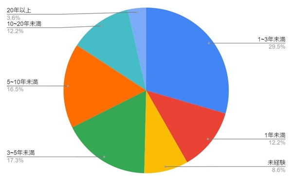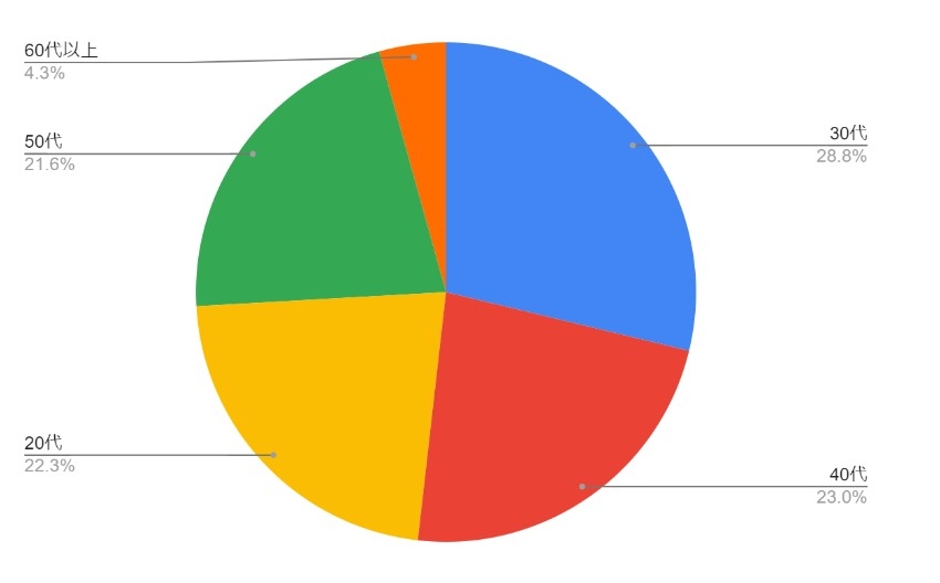 年齢は2050代の幅広い女性にお越しいただきました。ゴルフ歴は、未経験者(8.6%)と1年未満(12.2%)、13年未満(29.5%)で半数を占め、ゴルフ初心者の方を中心に、気軽にゴルフに触れていただけるイベントとなりました。