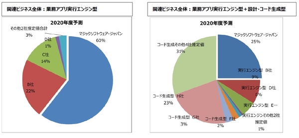 また、同調査ではライセンス販売金額だけでなく、ツールベンダーとそのパートナー企業によるコンサルティングやSI、および保守・サポートを含むローコード開発に関わる全体のビジネス規模についても調査しています。ここでもMagic xpaは、業務アプリ実行エンジン型カテゴリーでは60%でトップ。設計・コード生成型カテゴリーを含むオンプレミス型ツールの関連ビジネス全体でも25%でトップシェアでした。