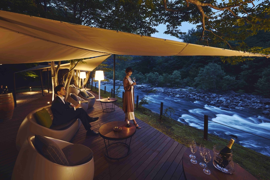 2019年7月にオープンした、奥入瀬渓流の自然の中で、品格ある料理と銘醸ワインが堪能できるフレンチレストラン。渓流を望むテラスで食前酒とおつまみを楽しむ「アペロ」と、伝統に敬意を払いながらも洗練された料理「グランドキュイジーヌ」、世界中から厳選された銘醸ワインを、自然を感じる空間で、ゆっくりと楽しむことができます。