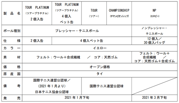 ITF公認の上記3機種に加え、入門者向けの練習用・レジャー用ノンプレッシャーボール「NP」も発売することで、国際大会公認球から練習球、レジャー向けボールまで、幅広いラインナップを展開し、テニスプレーヤーの多様なニーズにお応えします。