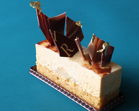 ほろ苦いキャラメルムースと洋梨コンポートのハーモニーを楽しむ大人スイーツ。