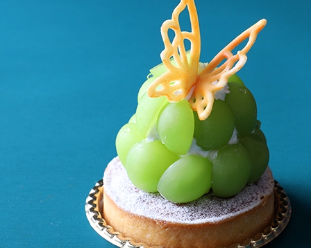 「エメラルドの宝石」といわれるシャインマスカットを贅沢に使用して、チーズクリームと合わせたタルト。