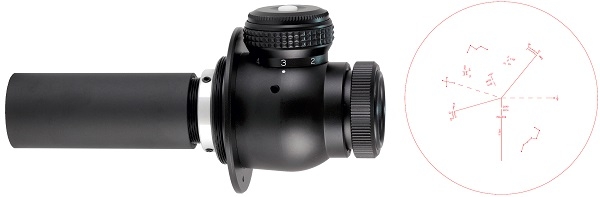 付属の極軸望遠鏡PF-LIIは、北極星の位置を示す特殊スケールを内蔵した、極軸合わせ(※)用の望遠鏡です。 スケールの所定位置に北極星などの3つの星が収まるように、極軸合わせを行うことで、望遠レンズで追尾撮影をしても星がずれにくい、高い精度での撮影が可能です。